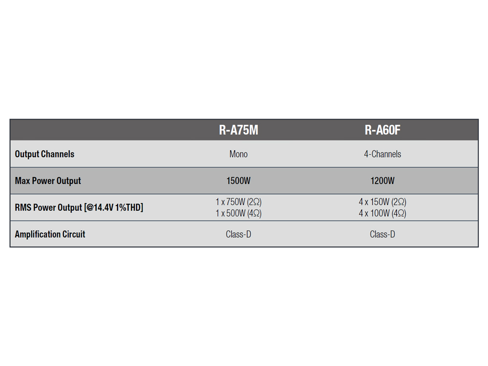 The “R” line of speakers and subwoofers have a heritage of sound quality you can hear from a block away, and the newly added R-Series amplifiers are no exception. Aside from their best-in-class performance, these amplifiers are tuned to emphasize the characteristics of the R-Series speakers and subwoofers, giving you that legendary R-Series experience.